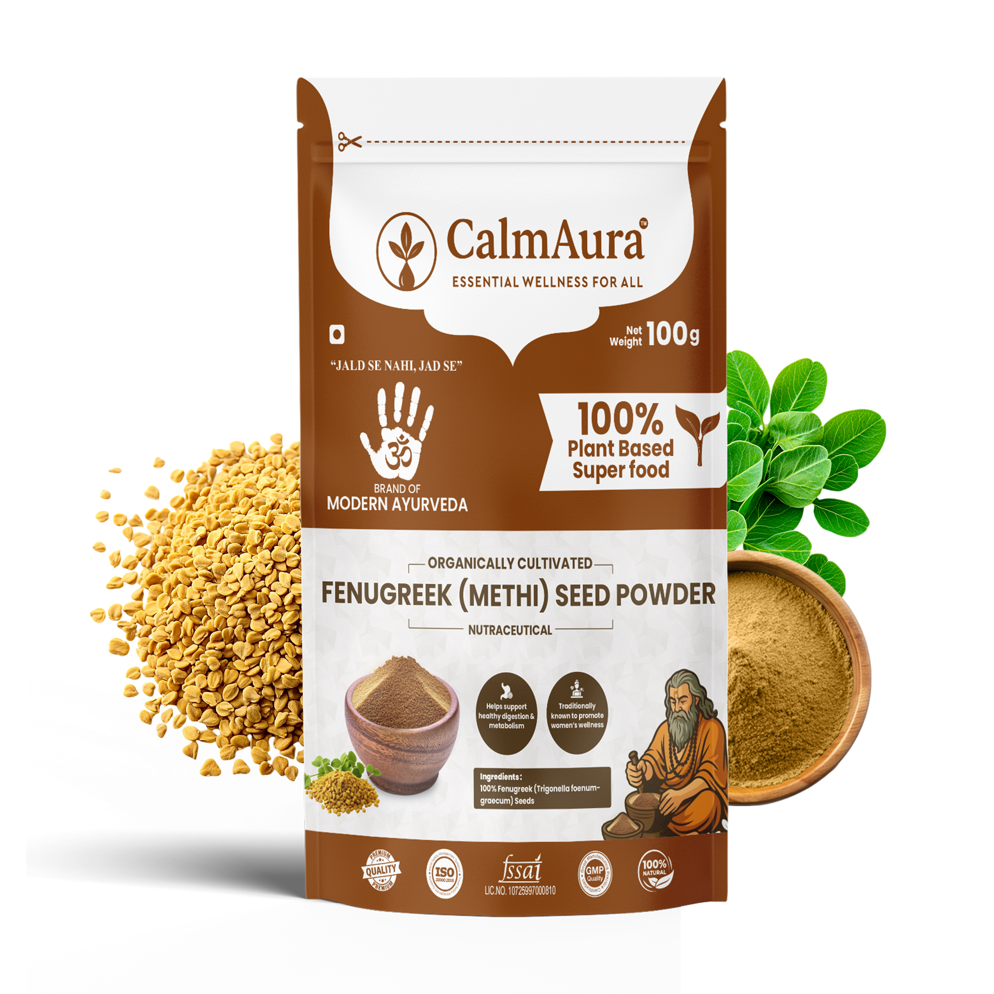 CalmAura Fenugreek Seed Powder is a natural Ayurvedic herb that supports metabolism, hormonal balance, and hair health.