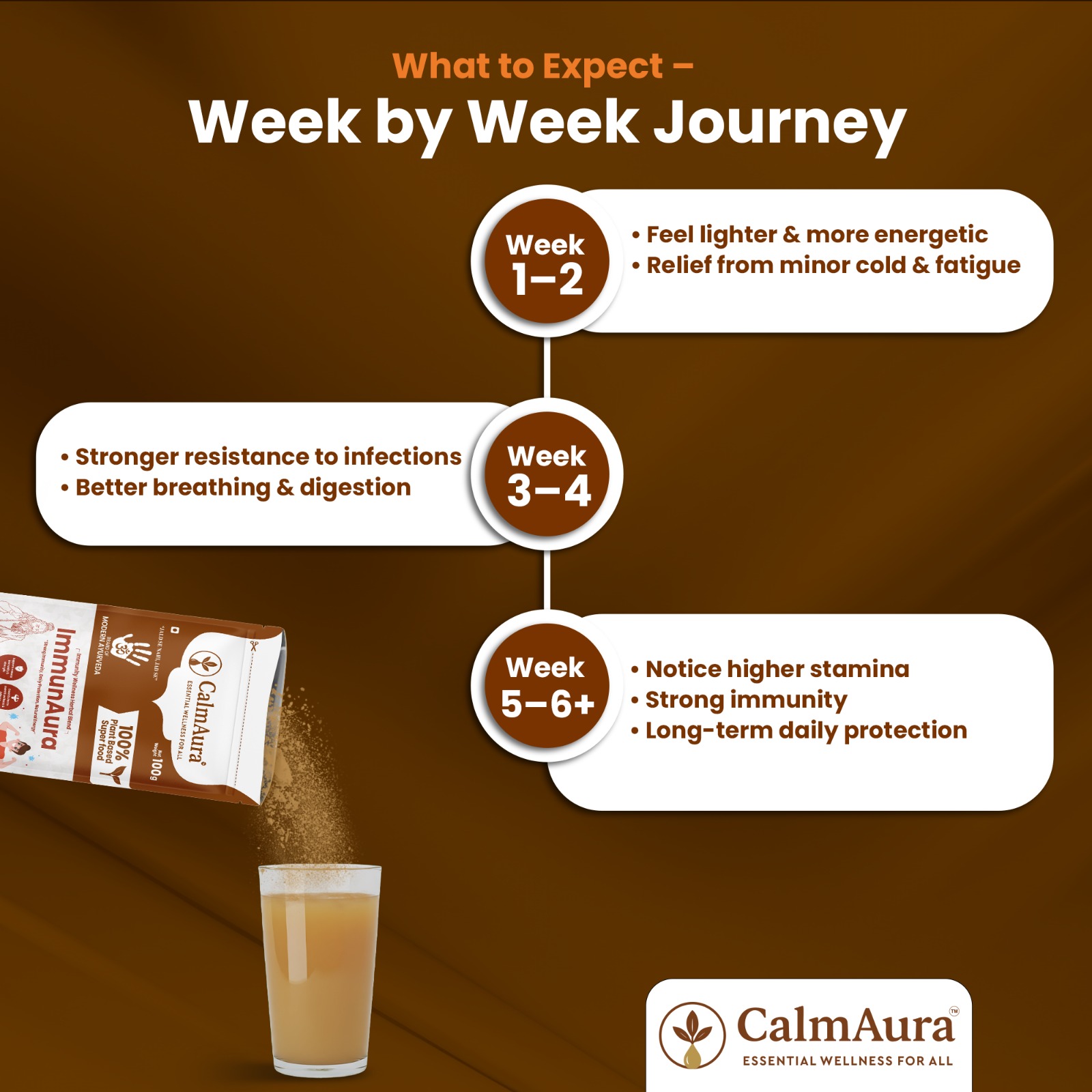 • Take 1 teaspoon (3–5 g) of ImmunAura powder with lukewarm water.