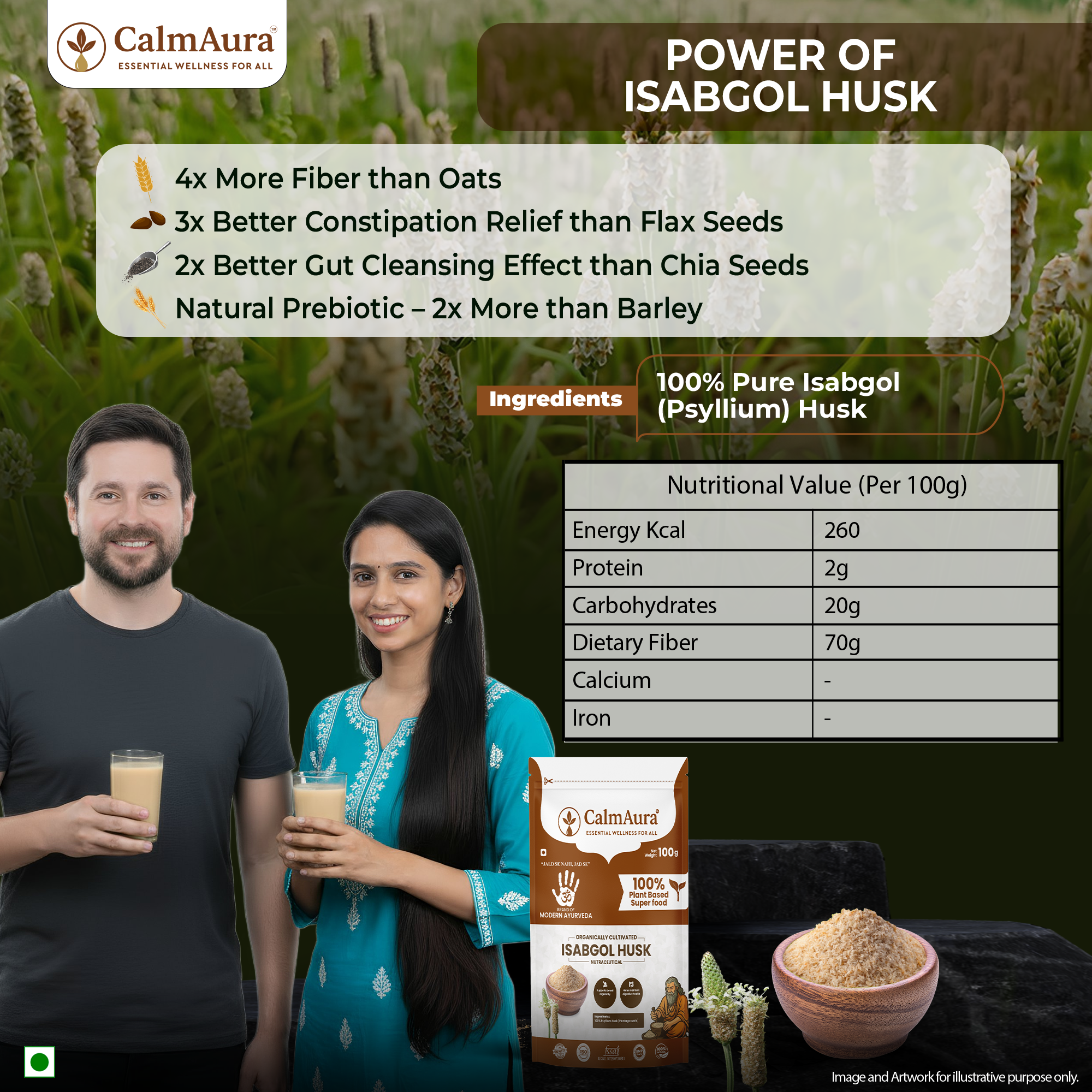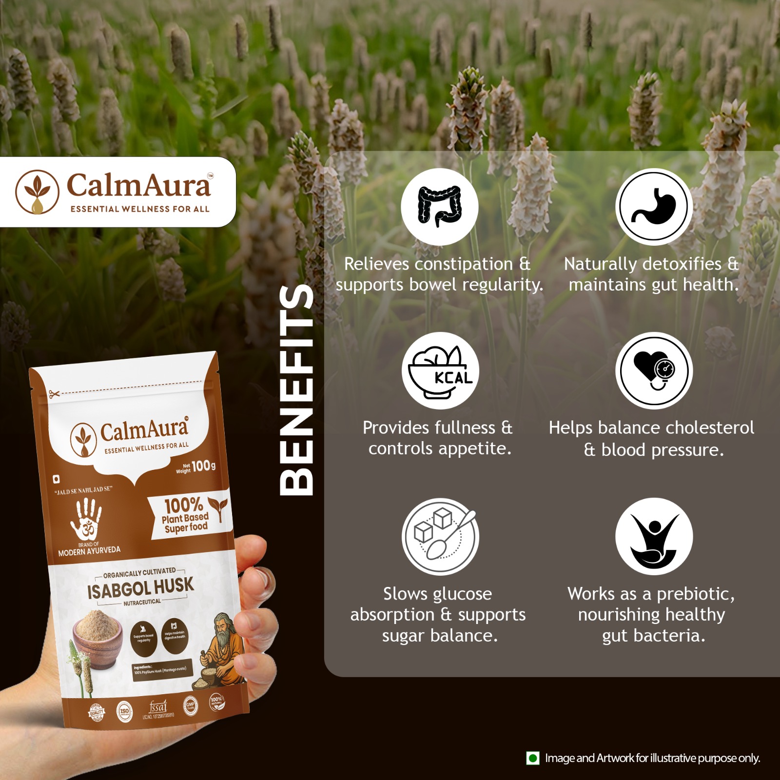 CalmAura Isabgol Husk is a natural Ayurvedic fiber for healthy digestion and detox.